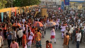 બાદ માં બેન્ડવાજા ની સુરાવલીઓ સાથે ધામધૂમપૂર્વક વરઘોડો નિકળ્યો હતો.જેમાં હાથી ઉપર શાલીગ્રામ ભગવાન બિરાજ્યાં હતા.