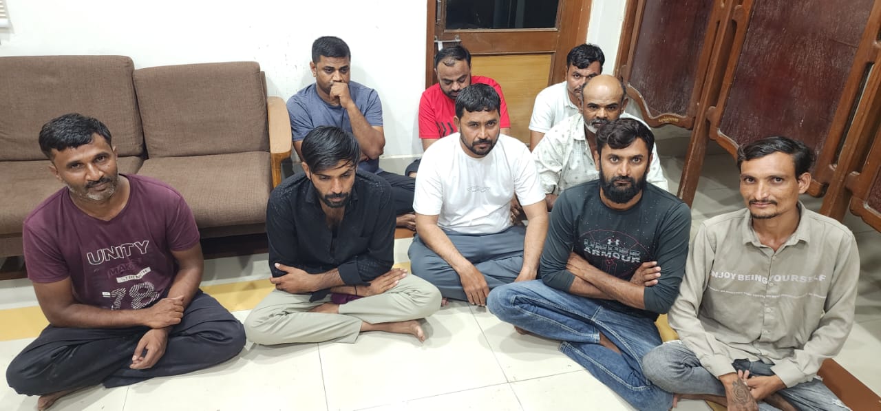 પ્રાપ્ત વિગતો મુજબ એલસીબી શાખા નાં પીઆઇ. વી.વી.ઓડેદરા નાં માર્ગદર્શન હેઠળ પીએસઆઈ. ગોહીલ, એએસઆઇ. ઇન્દ્રસિંહ જાડેજા,જયવિરસિંહ રાણા, બાલકૃષ્ણત્રિવેદી,અનિલભાઈ ગુજરાતી,ભગીરથસિંહ જાડેજા,મનોજ બાયલ,મહીપાલસિહ ચુડાસમા,દિલીપસિંહ જાડેજા સહિત પેટ્રોલીંગ માં હતા ત્યારે બાતમી નાં આધારે ઘોઘાવદર નાં ખોડાભાઇ ઘોઘાભાઇ સુરાણી ની સીમ માં આવેલી વાડીનાં મકાન માં દરોડો પાડી જુગાર રમી રહેલા વાડી માલિક ખોડાભાઇ ઘોઘાભાઇ સુરાણી, રવિભાઈ હરસુખભાઇ બાવળીયા રહે.ભગવતપરા ગોંડલ, રેગનભાઇ માવજીભાઇ રેવર રહે.ઘોઘાવદર, ઘનશ્યામભાઇ બટુકભાઈ ગમારા રહે.વાછરા,દિવ્યેશભાઈ વીરજીભાઇ વિરડીયા રહે.ઘોઘાવદર, હનિફભાઇ મહંમદભાઇ સમા રહે.બંધીયા, ઘોઘાવદર નાં સરપંચ હરેશભાઈ લીંબાભાઈ સાવલીયા , યોગેશભાઈ સવજીભાઇ સવજીભાઇ ઠુંમર રહે.માંડણકુંડલા તથા તાલુકા પંચાયત નાં સદસ્ય જીગ્નેશભાઈ વિઠ્ઠલભાઈ ઘેલાણી રહે.ઘોઘાવદર ને જડપી લઇ કાર્યવાહી કરી હતી.