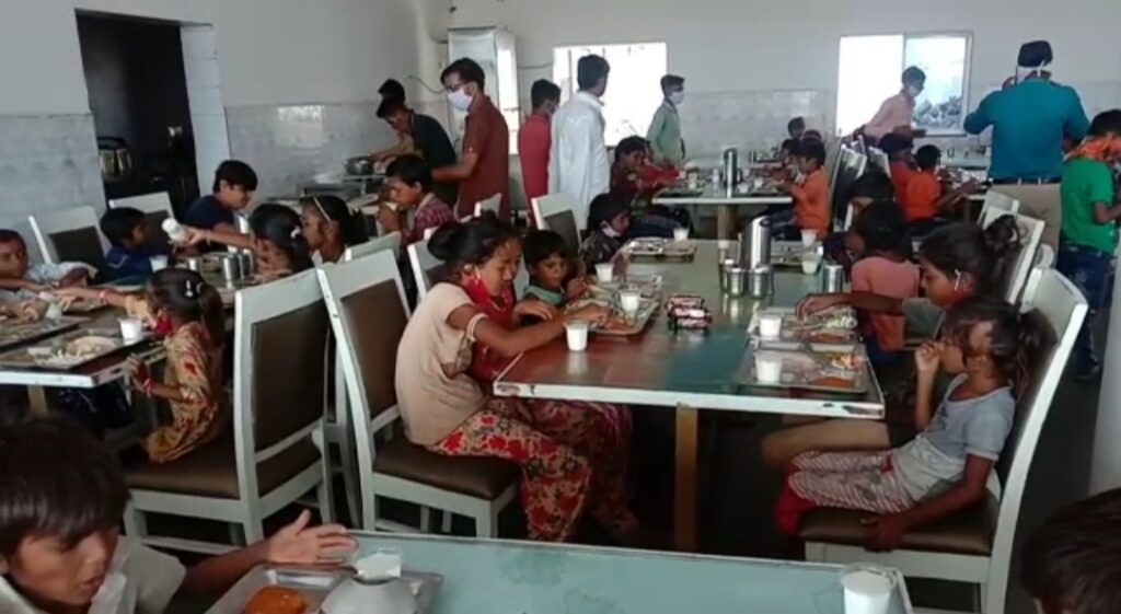 (પંજાબી બે શાક, જીરા રાઈસ ,દાલ ફ્રાય,તંદૂરી રોટી, છાસ પાપડ સલાડ,)સાથે તમામ બાળકો ને માસ્ક આપવામાં આવ્યા હતા આમ બાળકોના મોઢા ઉપર એક અનેરો ઉત્સાહ જોવા મળ્યો હતો