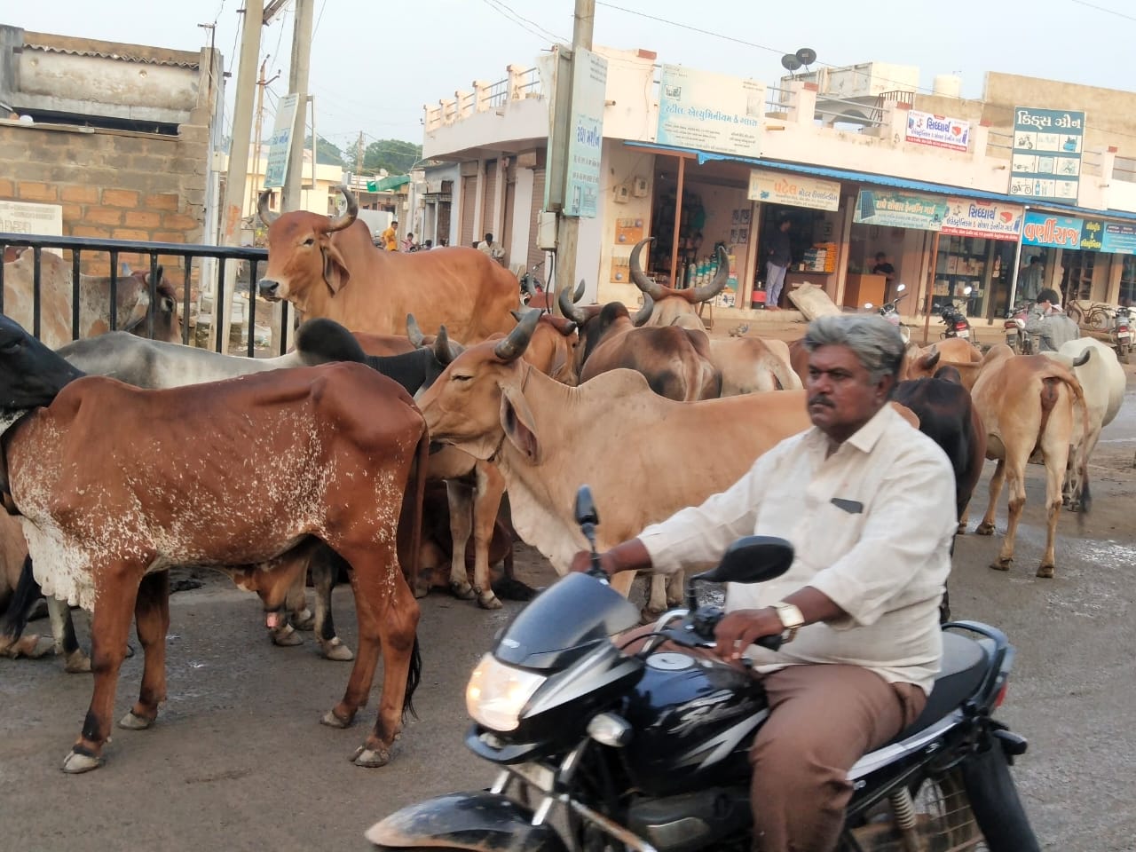 હળવદ ના રસ્તાઓ પર રખડતા ઢોરના અડીંગાથીવાહનચાલકો,રાહદારીઓ ભારે પરેશાન