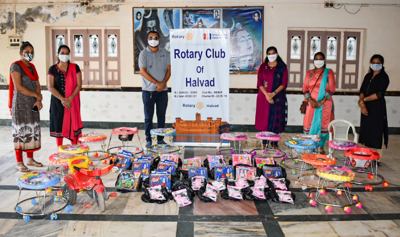 ત્યારે આવા સ્લમ એરિયાના બાળકોના ચહેરા પર સ્મિત લાવવા માટે નો વિચાર કરીને ઇનરવિલ ક્લબ ઓફ હળવદના બહેનોએ 0 થી 3 વર્ષ સુધીના બાળકો માટે વિવિધ પ્રકારના નવા રમકડાં, વોકર વગેરે ભેટ કરી અને તેમના ચહેરા પર મુસ્કાન લાવવા માટેનો એક સુંદર પ્રયાસ કર્યો હતો.