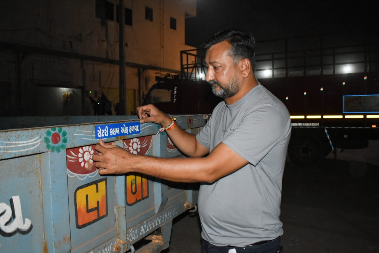 Halvad-Morbi રોટરી અને રોટરેક્ટ ક્લબ ઓફ હળવદ દ્વારા ટ્રેકટરની ટ્રોલી પાછળ રેડિયમ સ્ટીકર લગાવવામાં આવ્યાં.