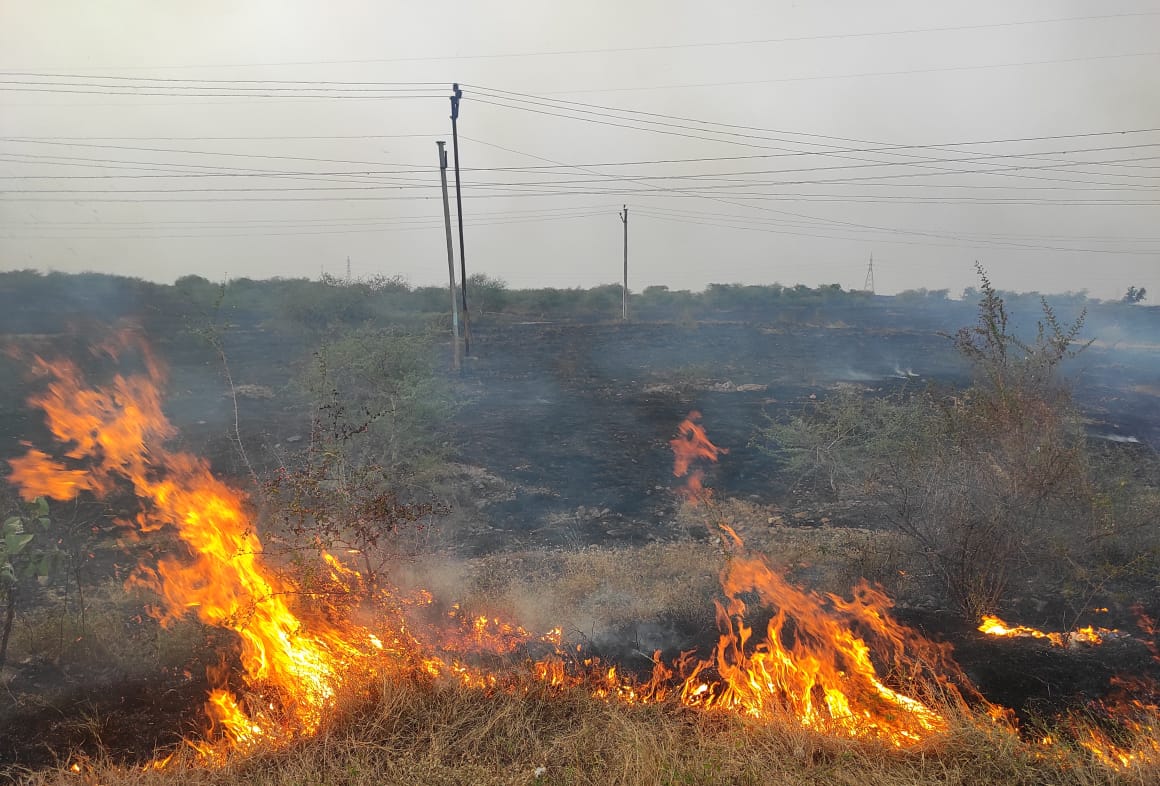 Jasdal-Rajkot જસદણ નજીક ડુંગરપુર વીડીમાં ભીષણ આગ લાગી, 500 વીઘામાં ઉભેલું ઘાસ બળીને ખાક થઈ ગયું.