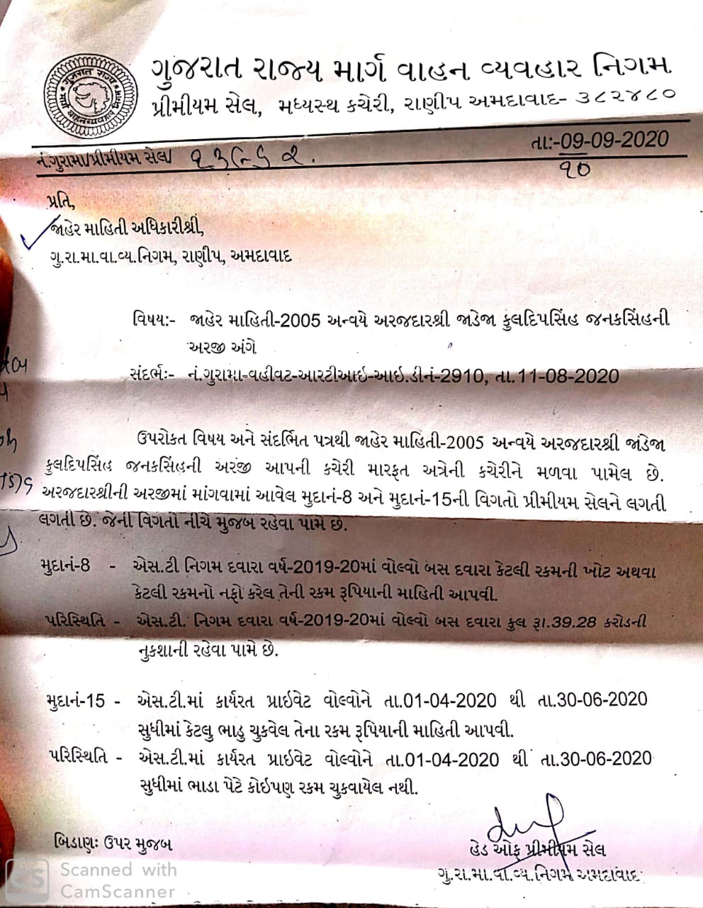 Gondal-Rajkot. એસ ટી માં ચાલતી વોલ્વો બસ દ્વારા ૧ વર્ષ મા ૩૯ કરોડ થી વધુ ની જંગી નુકશાની:ગોંડલ ની આરટીઆઇ દ્વારા ચોંકાવનારો ખુલાસો.