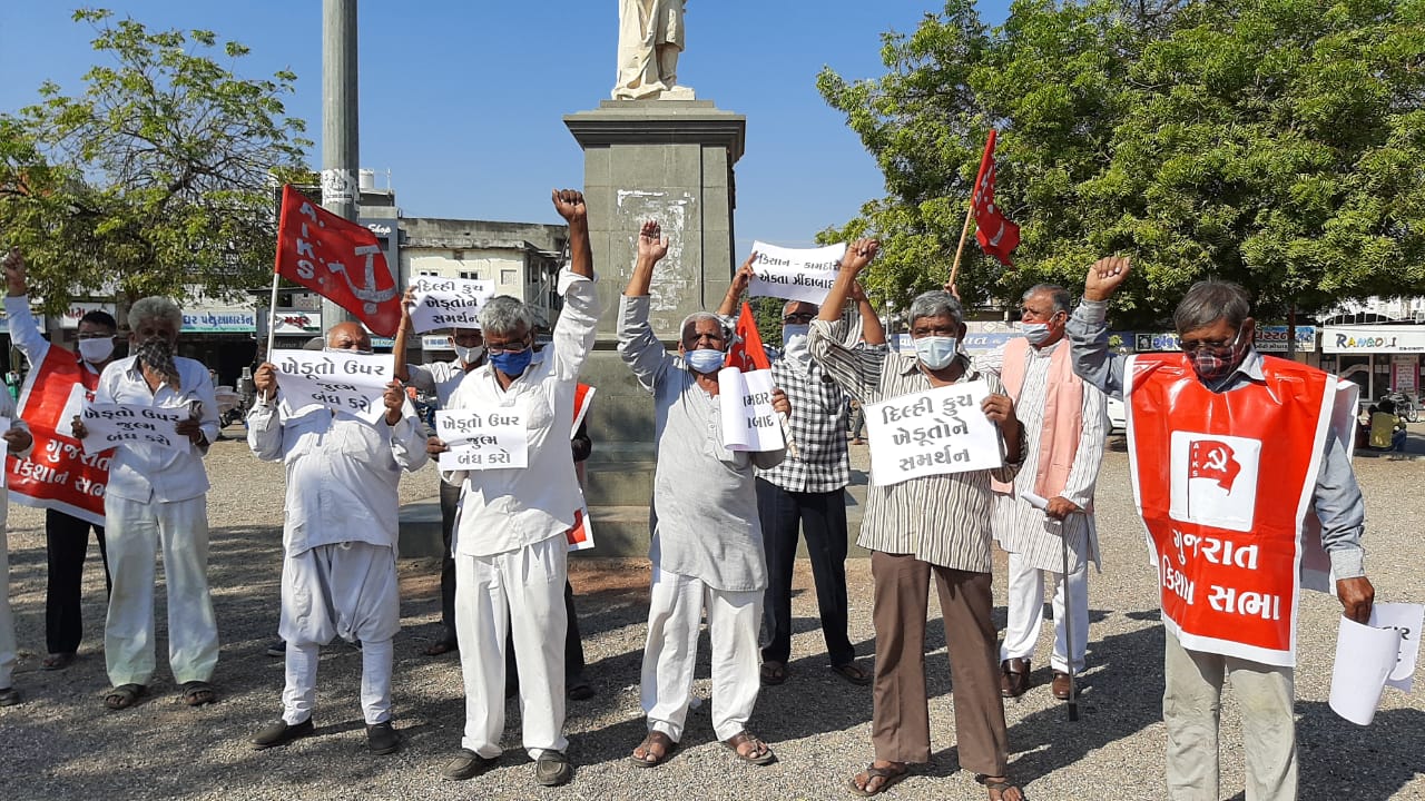 ખેડૂતો દ્વારા ઉત્પાદન થતી 22 ખેત જણસીને આવશ્યક ચીજવસ્તુના દરજ્જા માંથી કાઢી નાખવામાં આવી છે તેથી સરકારનું નિયંત્રણ રહેશે નહીં અને આ તમામ વસ્તુઓ પર ખાનગી કંપનીઓનું નિયંત્રણ જ રહેશે. આ ખેત પેદાશોમાં કંપનીઓને ખુલ્લી છૂટ મળશે આથી દેશના ખેડૂતોને 22 જેટલી ખેતપેદાશો છે તે હાલ કંપનીઓના હવાલે કરી દીધી છે આમ ભવિષ્યમાં દેશના ખેડૂતોનું ખુલ્લુ શોષણ કંપનીઓ કરશે અને ખેડૂતોના 86% નાનાસીમાંત પર અને ગરીબ ખેડૂતો બેહાલ થઇ જશે. આથી ગુજરાત કિસાન સભા દ્વારા ઉપલેટાના જાહેર ચોકમાં એકઠા થઇ અને સૂત્રોચ્ચાર કરી ખેડૂત વિરોધી કાયદાઓ તેમજ દિલ્હીમાં ચાલી રહેલા આંદોલનમાં સમર્થન આપવા તેમજ આ ત્રણ કાયદાઓ પાછા ખેંચવા રાષ્ટ્રપતિ મહોદયને સંબોધીને આજે ઉપલેટા મામલતદાર કચેરી ખાતે આવેદનપત્ર પાઠવવામાં આવ્યું હતું.