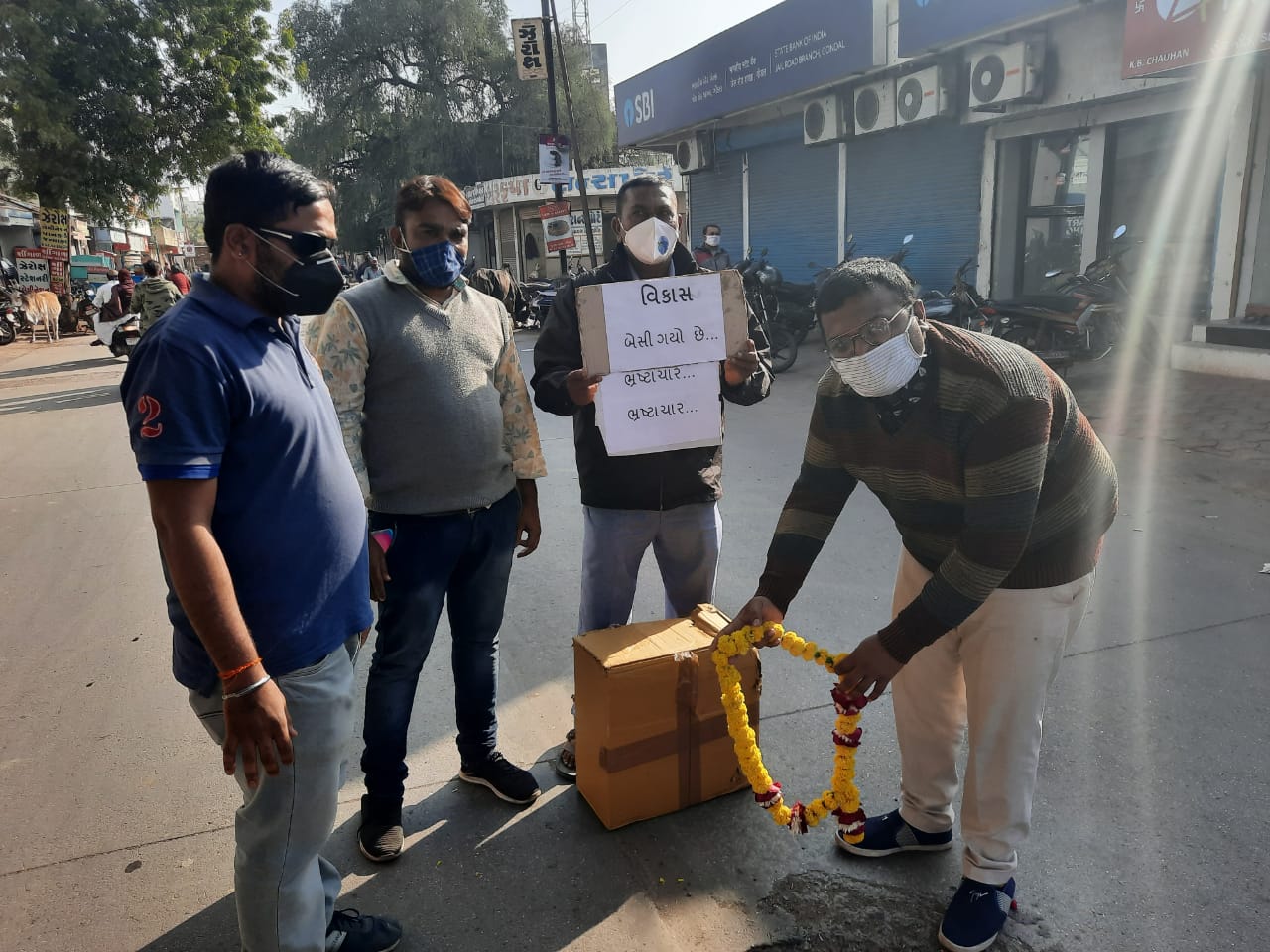 Gondal-Rajkot ગોંડલમાં કોંગ્રેસીઓએ ખરાબ રોડ નું બેસણું યોજ્યું.