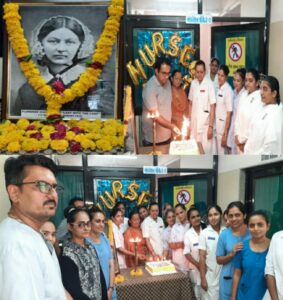 આ પ્રસંગે અધિક્ષક ડો.બી.એમ.વાણવીસાહેબ,ડો.ગઢિયાસાહેબ,મેટરન કારીયામેડમ,પ્રકૃતિપ્રેમી હિતેશભાઈ દવે,ધર્મેશભાઈ કોઠારી વગેરે ની ઉપસ્થિતિ માં હોસ્પિટલ સ્ટાફ દ્વારા કેક કાપી,દીપ પ્રગટાવી વિશ્વ નર્સ દિવસ ની ઉજવણી કરવામાં આવી હતી.