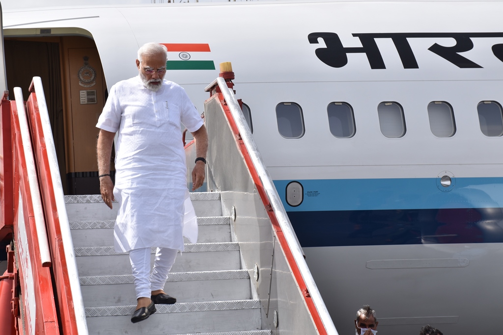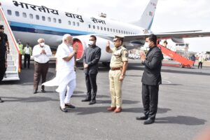 રાજકોટ એરપોર્ટ ખાતે વડાપ્રધાનશ્રી નરેન્દ્રભાઈ મોદીનું ઉષ્માભર્યું સ્વાગત કરાયું.