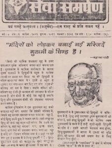 સેવા સમર્પણ સામયિકમાં પ્રસિદ્ધ થયેલા આ લેખના ચિત્રના તળિયે 27 જુલાઈ, 1937ના ‘નવજીવન’ના અંકનો સંદર્ભ આપવામાં આવ્યો છે. એવો દાવો કરવામાં આવી રહ્યો છે કે મહાત્મા ગાંધીએ શ્રી રામ ગોપાલ ‘શરદ’ના પત્રના જવાબમાં લખ્યું હતું કે મંદિરો તોડીને મસ્જિદો બાંધવી એ ગુલામીની નિશાની છે. વાયરલ થઈ રહેલી તસવીરમાં મહાત્મા ગાંધીએ કથિત રીતે લખ્યું છે કે કોઈપણ ધાર્મિક સ્થળ પર બળજબરીથી કબજો જમાવવો એ ખૂબ જ ઘોર પાપ છે. મુઘલ કાળ દરમિયાન, ધાર્મિક કટ્ટરતાને કારણે, મુઘલ શાસકોએ હિંદુઓના ઘણા ધાર્મિક સ્થળો પર કબજો જમાવ્યો હતો, જે હિંદુઓના પવિત્ર પૂજા સ્થાનો હતા.