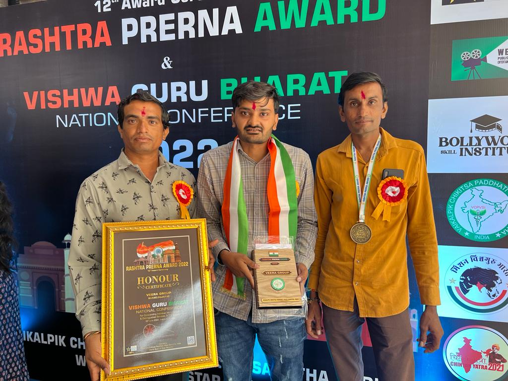 તા. 26 જૂન ના રોજ ઇન્દોર ખાતે વિશ્વ ગુરુ ભારત નેશનલ કોન્ફરન્સ તથા રાષ્ટ્રીય પ્રેરણા એવોર્ડ 2022 નું હોટલ મેરિયટ ઇન્દોર ખાતે આયોજન કરવામાં આવ્યું હતું આ કાર્યક્રમ મા સમગ્ર ભારત માંથી જુદી જુદી સેવાકીય સંસ્થા ઓ એ ભાગ લીધો હતો આવી તમામ સંસ્થા ઓના લોકો પોતાની ફિલ્ડ મા માહિર હોઈ તેવી સંસ્થા ને રાષ્ટ્રીય પ્રેરણા એવોર્ડ થી સન્માનિત કરવામાં આવ્યા હતા આ કાર્યક્રમ મા ગોંડલ ના સુલતાનપુર ની સેવાકીય સંસ્થા વિરા ગ્રુપ ના સભ્યો ને તેમની સેવાકીય કાર્ય માટે ખાસ બોલાવવામાં આવ્યા હતા જેમાં વિરા ગ્રુપ ને ઇન્ડિયા ટોપ સોશ્યિલ વર્ક માટે એવોર્ડ એનાયત કરવામાં આવ્યો હતો આ કાર્યક્રમ મા ઇન્દોર ના પ્રેસિડેન્ટ તથા ફિલ્મ સ્ટારો ને જુદા જુદા એવોર્ડ થી સન્માનિત કરવામાં આવ્યા હતા