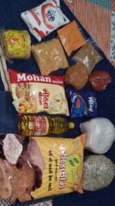 જેમાંઘઉં નો લોટ,તેલ,ખાંડ,ચા,વેસણ,નિમક,ચટણી,મગદાળ,ગોળ, તુવેરદાળ,ખીચડી,ચોખા,સાબુ,ટૂથપેસ્ટ,હળદર,ધાણાજીરું,ગરમમસાલો સહિત ઉપયોગી વિવિધ રાશન નું દાન આપવાના નું આ શુભ કાર્ય સમાજસેવી હિતેશભાઈ દવે,યોગેશભાઈ દવે,આશુતોષભાઈ શ્યારા,મનીષભાઈ જોશી,કિરણબેન દવે ના સહયોગ થી રાશનકીટ ભુદેવ પરિવારજનોને પહોંચતી કરવામાં આવેલ.