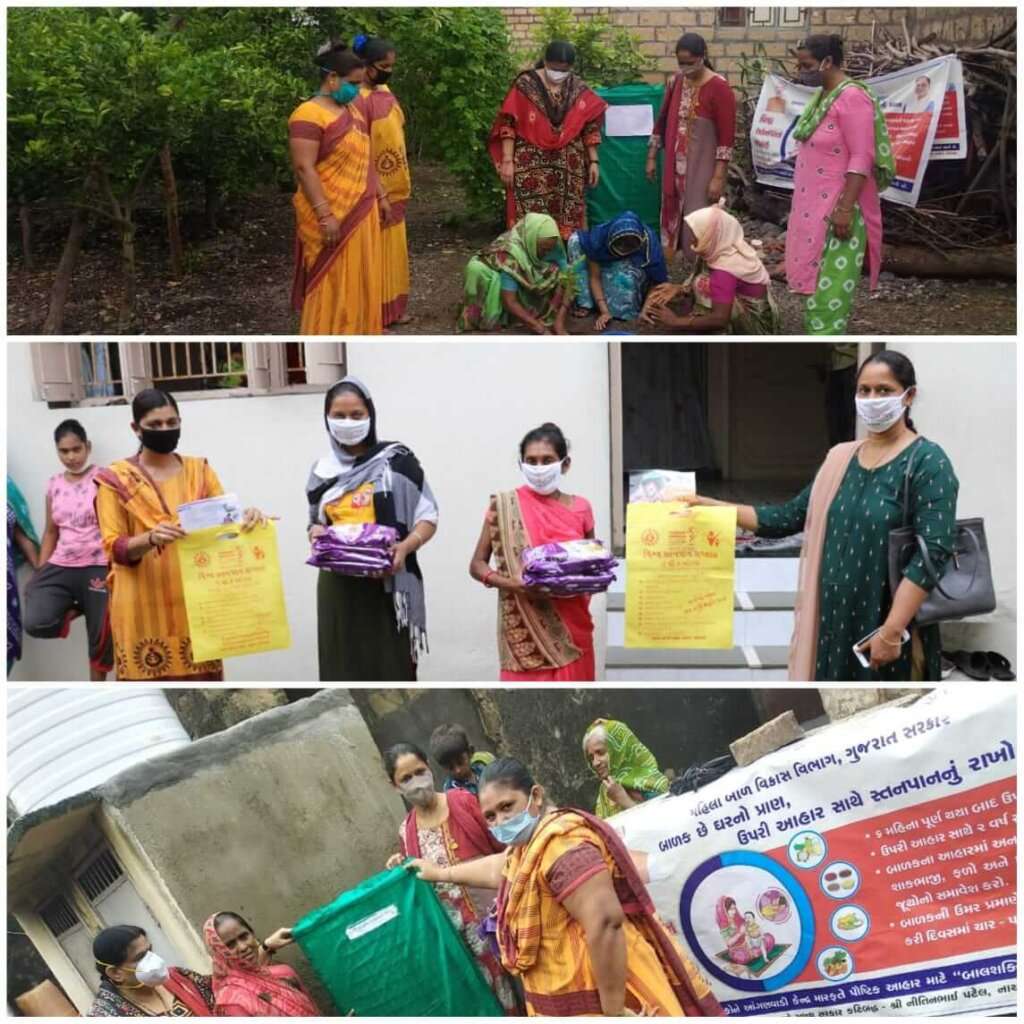 ધોરાજી ઘટક માં સ્તનપાન સપ્તાહ દરમ્યાન સગર્ભા માતાને સ્તનપાનના ફાયદા તેમજ કોરોનાકાળમાં કાળજી રાખવા માટેના સંદેશા વાલી બેગ તેમજ સગર્ભા અને ધાત્રી માતા ને માસ્ક નું વિતરણ કરવામાં આવેલ.તેમજ પ્રોગ્રામ ઓફિસરશ્રી વત્સલાબેન દવે, સીડીપીઓશ્રી પુજાબેન જોશી તેમજ મુખ્ય સેવિકા દ્વારા ૧ થી ૭ ઓગષ્ટ દરમ્યાન જન્મેલ બાળકો અને માતાઓ ની મુલાકાત કરી માર્ગદર્શન આપેલ અને પોષક તત્વો વિષે સમજણ આપેલ તથા જન્મેલ બાળકોના નામ પરથી ફળના ઝાડનું વૃક્ષારોપણ કરવામાં આવેલ અને આ ફળના ઝાડનું જેમ બાળક મોટું થાય તેમ અને જે માતા બાળકનું જતન કરે તેમ આ વૃક્ષનું જતન કરવા જણાવેલ હોય