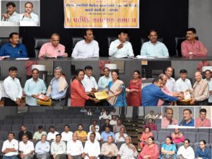સૌરાષ્ટ્ર યુનિવર્સિટી શૈક્ષણિક કર્મચારી ગ્રાહક અને ધીરાણ સહકારી મંડળી દ્વારા નિવૃત્ત અધ્યાપકોનું ગરીમાપૂણૅ સન્માન અને વાર્ષિક સાધારણસભા સમ્પન્ન: કુલપતિ પ્રો. ગીરીશભાઈ ભીમાણી અને આર. ડી. સી. બેન્ક ના ડિરેક્ટર અરવિંદભાઈ તાળા ઉપસ્થિત રહ્યા.