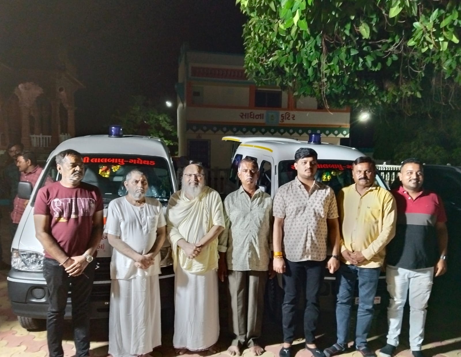 ઉપલેટા તાલુકાના ગધેથડ ખાતે આવેલ ગાયત્રી આશ્રમ ખાતે પરમ પૂજ્ય સંતશ્રી લાલબાપુના હસ્તે બે-બે એમ્બ્યુલન્સ નું લોકાર્પણ કરવામાં આવ્યું.