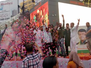 बारिश के बावजूद भी भगत सिंह चौक पर श्रम व सन्ननिर्माण आयोग के अध्यक्ष सुशील उर्फ सन्नी अग्रवाल के नेतृत्व में युवा नेताओं ने माहौल को यादगार बना दिया। वही युवा नेता के नेतृत्व में काफ़ी अधिक संख्या में महिला व पुरुष कार्यकर्ताओं का हुजूम नवनिर्वाचित प्रदेश अध्यक्ष दीपक कुमार बैज के स्वागत में उठ खड़ा हुआ और जयकारे से फिज़ा गूंज गई।