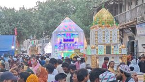 તાજીયા ઝુલુસ નીકળ્યું હતું તે દરમિયાન હિન્દૂ – મુસ્લિમ એકતા નું પ્રતીક જોવા મળ્યું હતું સેન્ટ્રલ સિનેમા ચોક ખાતે મેઘવાળ સમાજ દ્વારા ગરમ નાસ્તા નું આયોજન કરવામાં આવ્યું હતું