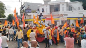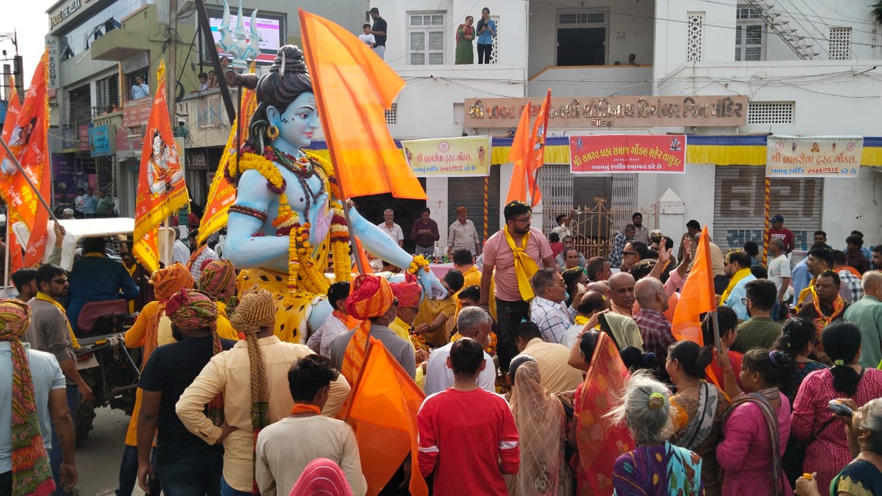 મુકતેશ્ર્વર ટ્રસ્ટ, બજરંગ દળ,વિશ્ર્વ હિન્દુ પરિષદ તથા હિન્દુ ઉત્સવ સમિતિ દ્વારા આયોજીત શિવશોભા યાત્રા બપોરે ચાર કલાકે શિવજી ની પ્રતિમા નુ વૈદોકત પુજન કરાયા બાદ શરુ થઈ હતી.