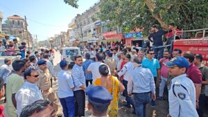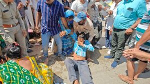 એજ સમયે કેરોસીન ની બોટલ લઈ છાવણી મા ઘસી આવેલા યુવાને શરીર પર કેરોસીન છાંટતા હોહા મચી જવા પામી હતી પોલીસે તુરંત યુવાન ને પકડી લઈ એમ્બ્યુલન્સ દ્વારા હોસ્પિટલ ખસેડ્યો હતો.
