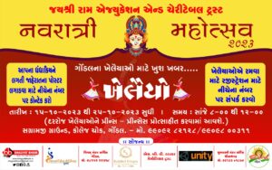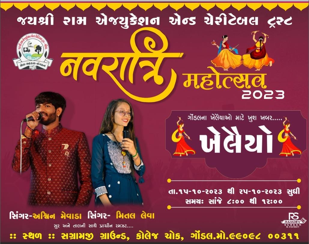 જય શ્રીરામ એજ્યુકેશન એન્ડ ચેરીટેબલ ટ્રસ્ટ ગોંડલ દ્વારા ખેલૈયો નવરાત્રિ મહોત્સવનું ભવ્ય આયોજન.