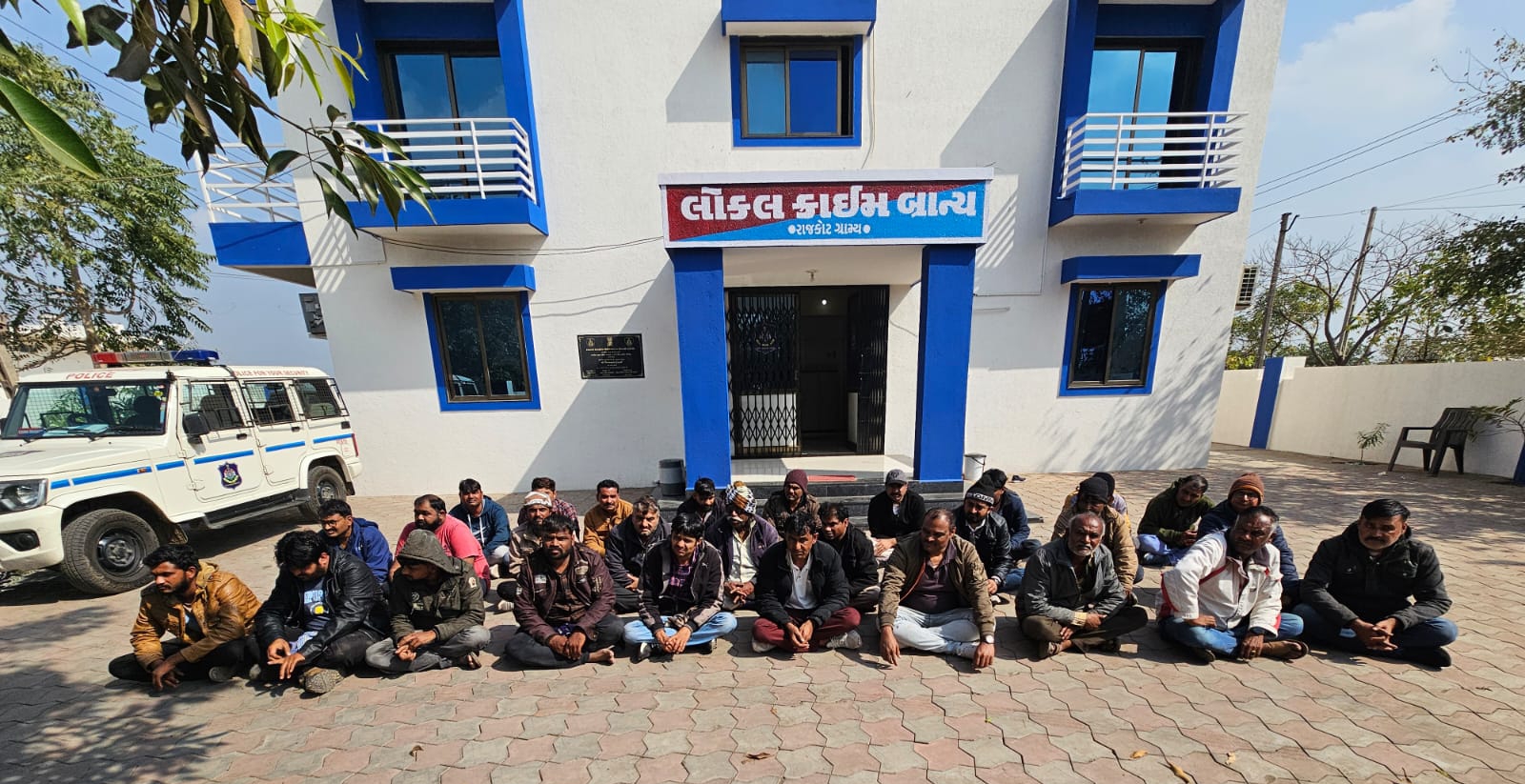 ગોંડલ તાલુકાના કમર કોટડા ગામની સીમમાં ઘોડીપાસાના જુગાર નો અખાડો પકડી પાડતી રાજકોટ લોકલ ક્રાઈમ બ્રાન્ચ:રેઈડ દરમ્યાન કુલ ૨૮ ઈસમોને કુલ કિ.રૂ.૫૩,૭૧,૭૦૦/- ના મુદ્દામાલ સાથે પકડી લેવાયા.