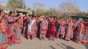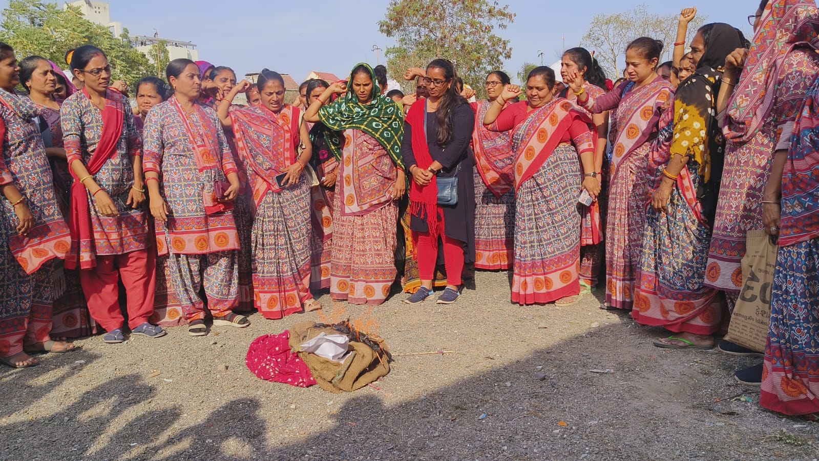 જેતપુર: આંગણવાડીના બહેનો દ્વારા વિરોધ પ્રદર્શન, બજેટને ચાંપી આગ.