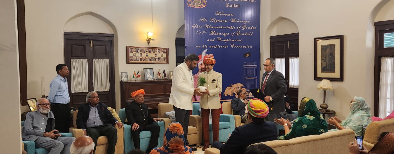 રાજકોટ આર. કે. સી. ખાતે ગોંડલ રજવી નું સન્માન કરાયુ:ગોંડલ નાં સ્વપ્નદ્ર્ષ્ટા રાજવી સર ભગવતે અહી શિક્ષણ લીધુ હતુ.