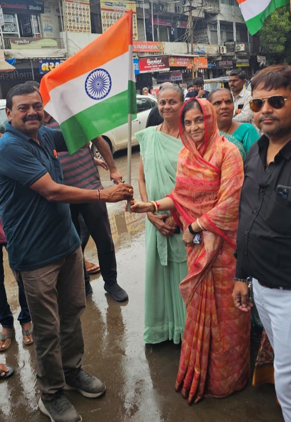 આ કાર્યક્રમમાં ધારાસભ્ય ગીતાબા જાડેજાની ઉપસ્થિતિમાં રાહદારીઓ, વાહનચાલકો, બાળકો, વિદ્યાર્થીઓ સહિતના લોકોને દસ હજાર તિરંગા વિતરણ કરાયા હતા અને સાથે 15મી ઓગસ્ટ સ્વાતંત્ર્ય પર્વ દીવસે સૌ નાગરિકો પોતાના ઘર, ઓફિસ, દુકાન પર તિરંગો લહેરાવી રાષ્ટ્રભક્તિ બતાવીએ તેવી અપીલ કરવામાં આવી હતી.
