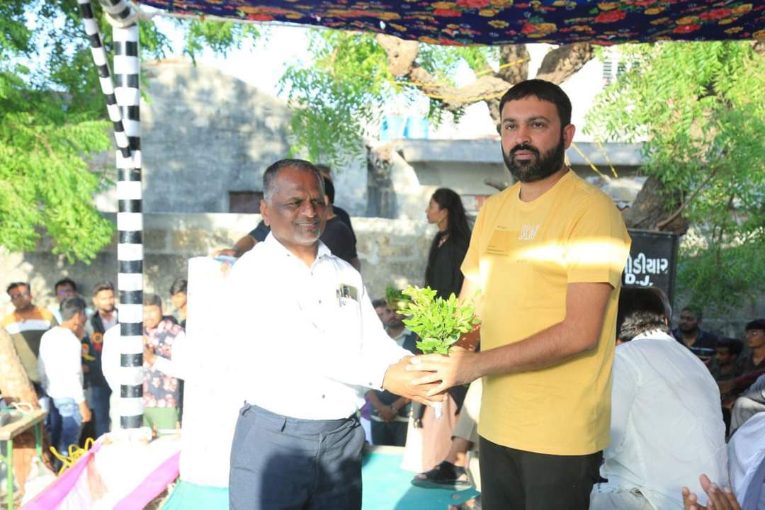 Jetpur-Rajkot-જેતપુરના દેવકી ગાલોળ ગામે જે. એચ. આડતિયા હાઈસ્કૂલના શિક્ષકની રક્તતુલા કાર્યક્રમ યોજાયો.